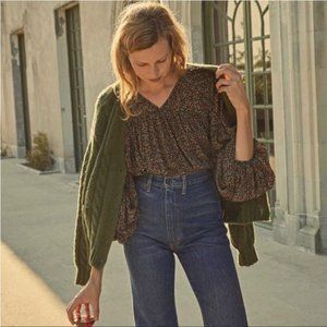 The floaty body is gathered into the yoke seam across the fitted front, leading to a flowing floral and paisley print that cascades to the perfect length for tucking into your favorite pair of high waisted jeans.