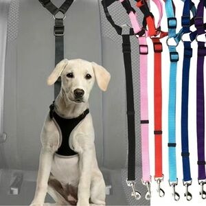 Brand new safety strap for dog in car Sky blue Keep you pet safe on the road when traveling. Fasten the adjustable loop around the rear seat head rear. Fasten the hook on the adjustable strap to the dogs harness. Note: For the safety of your pet, do NOT use with a collar. Use only with a harness. No flaws Smoke free home & same or next business day ship. Coloration may very slightly due to lighting or your viewing device.