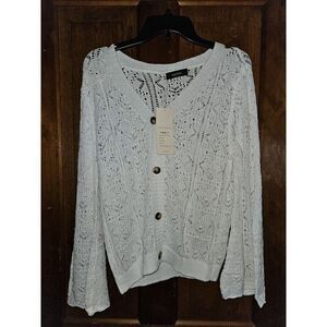 New Dokotoo Women's Large Sz 12 White Summer Crochet Cardigan Sweater Bell LS