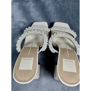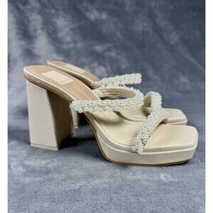 New! Dolce Vila Cream Peal- Embellished Block Heel Sandal Size 6 Wedding Formal