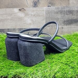 New Dolce Vita Block Heel Sandals Strappy Slide Black Glitter 8.5