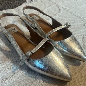 New Dolce Vita Crackled Metallic Carder Silver Mary Jane Flats Womens 9.5