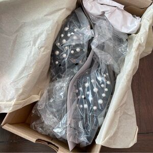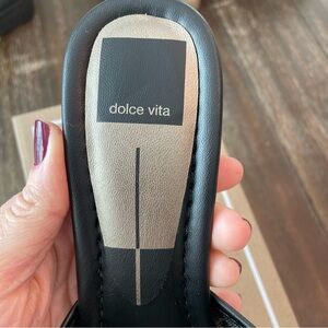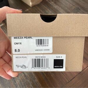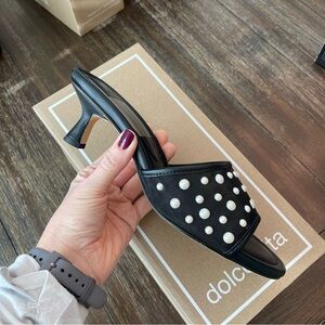 New Dolce Vita Meeza Pearl Sandals Onyx Black Mesh Women’s 8 Kitten Slide Heels