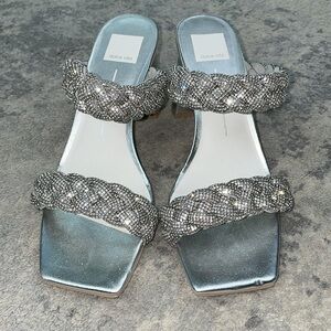 New Dolce Vita Paily Rhinestone Sparkle Sandals Heels Silver Sz 9