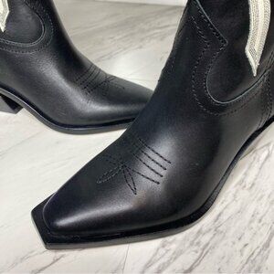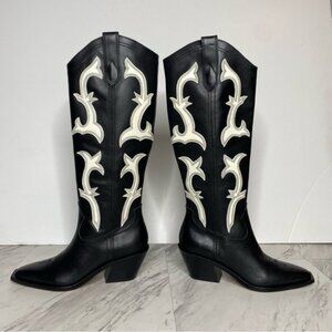 New! Dolce Vita Samare Black White Leather Tall Western Boot 5