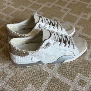 New Dolce Vita White Leather Glitter Sneakers Low Top Lace Up Streetwear 9.5