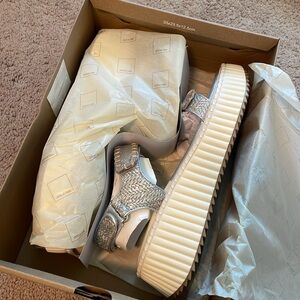 New Dolce Vita Debra Platform Ankle Strap Sandals in Silver Distressed Leather