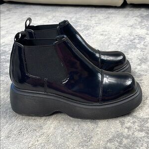 cuz you’re cute and educated. These platform ankle boots have a vegan leather construction, side elastic bands, and a slip on fit.