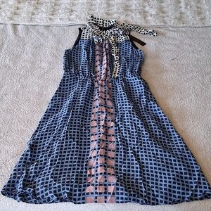 New Donna Karan Blue and White Patterned Dress