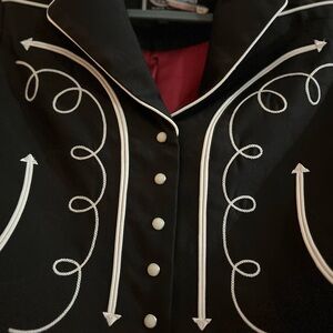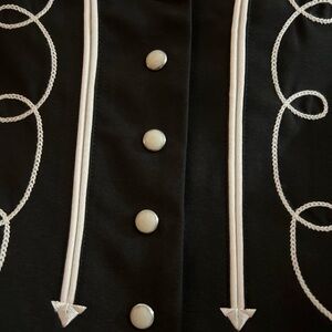 Chic meets whimsical in this charming pant. The cropped wide leg silhouette brings an ultra-modern feel that’s balanced by the retro embellishments of white contrasting welts and coil embroidery against the rich ‘bronco’ brown. It’s a stunning statement piece all on its own, but it’s power-suit perfection paired with the Rag Proper Jacket!
