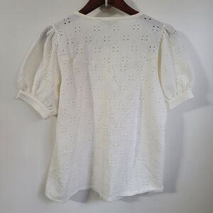 New DownEast Gentry Button Blouse ivory eyelet size small