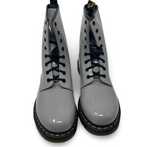 New Dr. Martens 1460 Women Patent Leather Lace Up Boots in Zink Grey sz 11. Our high-shine Patent Lamper 1460 boot stays true to its Original construction: yellow welt stitching, a scripted AirWair heel loop and a tough air-cushioned sole