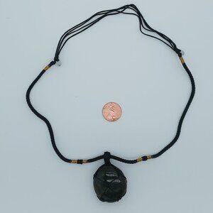 Black Labradorite Heart Necklace with a black 18" adjustable macrame cord.