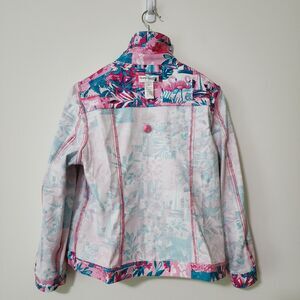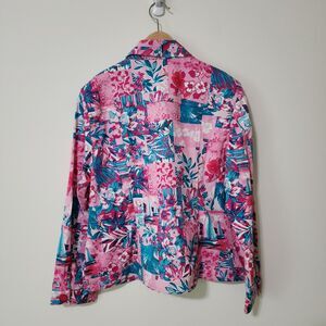 New Drapers & Damons Womens Button-Up Jacket Pink Teal Tropical Cotton-Blend PL
