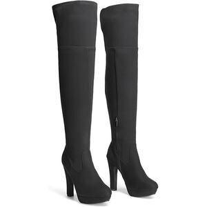 New Dream Pairs Women Size 7 Black Faux Suede 5" Heel Thigh High Over Knee Boots