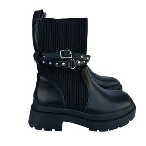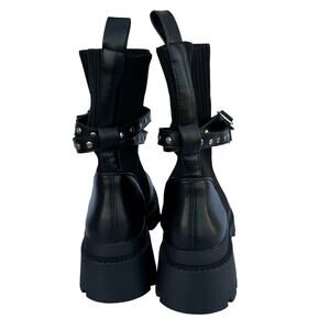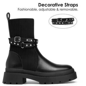 New Dream Pairs Women's Black Stride Strap Chunky Lug Sole Platform Booties 7