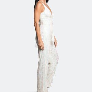 New Dress The Population Kinsley V-Neck Sequined Fringe White Jumpsuit Medium