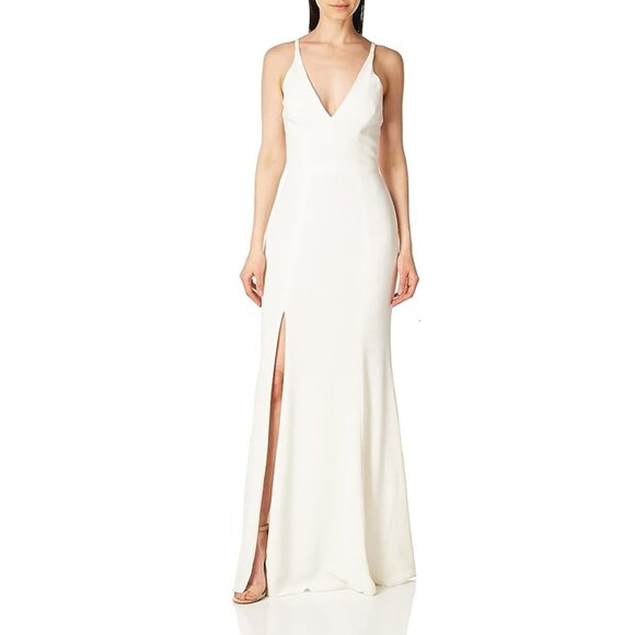 New Dress The Population Women's Iris Slit Crepe Gown P5473