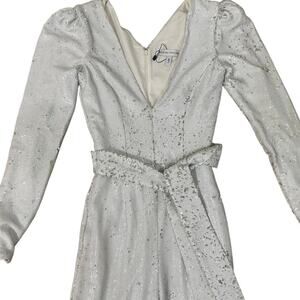 Dress the Population NWOT White & Silver Sequin Long Sleeve Belted Jumpsuit XS