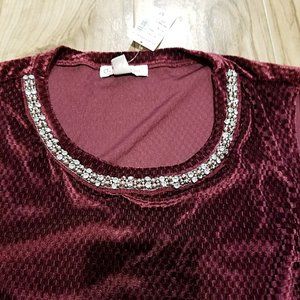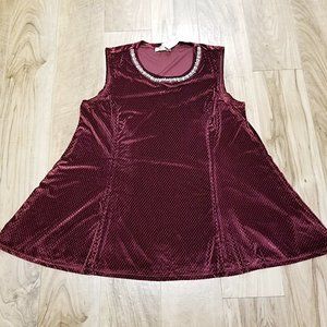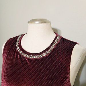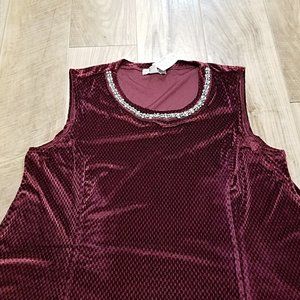 New DressBarn Tunic Top M Womens Red Velvet Sleeveless Jeweled Neckline Blouse