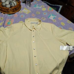 New with tags dress barn top size women's 3X. It is yellow button down has shoulder pads 28 inches across and 32 inches long.