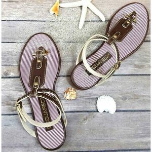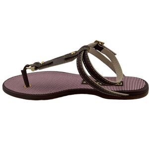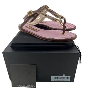 100% Authentic! New DSQUARED2 Women's Gold Brown Leather Textile T-Strap Flat Sandals US 6 / 36 EU