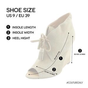 Sleek, bold, and unmistakably designer — these Dsquared2 suede wedge booties blend European craftsmanship with a fashion-forward silhouette. Featuring a soft suede upper, elegant peep toe, and lace-up front with tassel detail, they’re the perfect statement shoe for elevated styling.