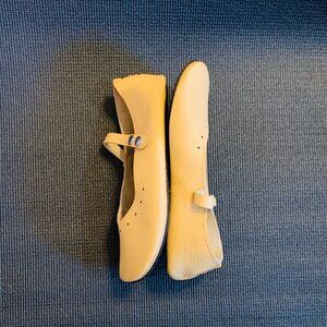 New, I've only tried on with socks. I so wanted these to fit but they are too loose on me. Buttery soft leather, very flexible, barefoot style, handmade in US
