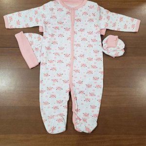 New Duck Duck Goose Girls 5-Piece Bring Home Baby Layette Pink & White Clouds