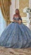 New Dusty Blue Off The Shoulder Satin Ball Gown w/ Sheer Boned Bodice GL3795