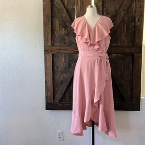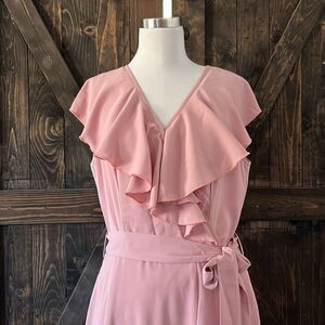 New Dusty Pink Flowy Maxi/Midi Ruffle Dress Sz- Med