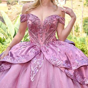 New Dusty Rose Off The Shoulder Maxi Satin Quinceanera Gown w/ Sequins GL3794