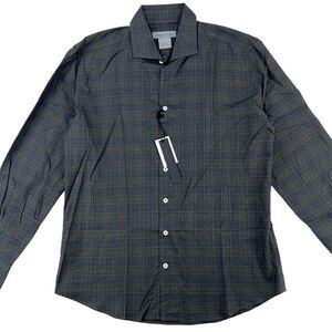 New Dylan Gray Men US L Dress Shirt Button Down Long Sleeve Gray Olive Plaid