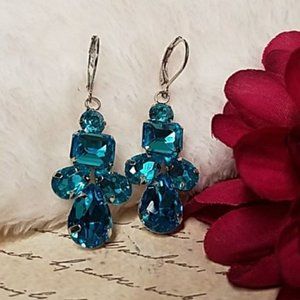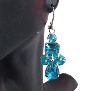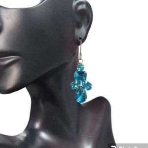 New E897 2" Blue Geoshaped Crystal Drop Earrings. Women's Fashion Jewelry