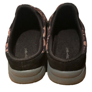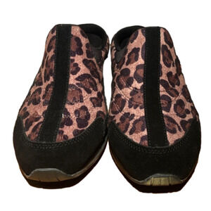 New EASY SPIRIT Brown Leopard Print Black Suede Trim SE TRAVEL TIME 381 Mules 8W