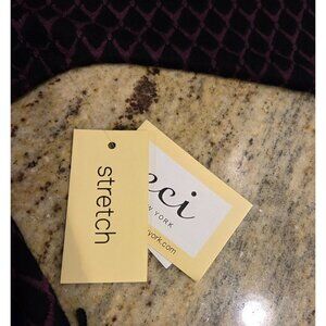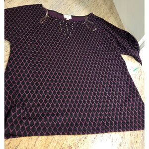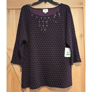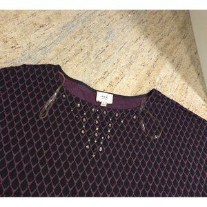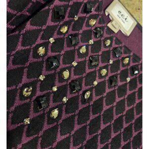 New! ECI Size L Sweater Black Purple Embellished Neck Rhinestone Geometric