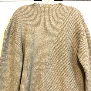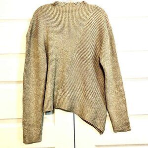 New EDITED BY REMI BADER Asymmetric-Hem Mock Neck Ribbed Sweater Oatmeal L