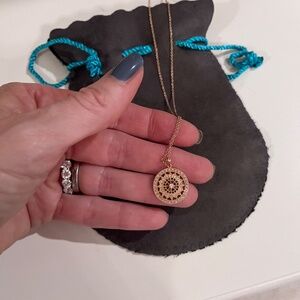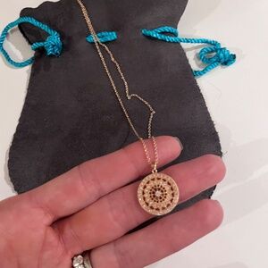 Heirloom-worthy sparkle. This stunning pendant necklace from EFFY boasts an openwork disc design bedecked with round-cut diamonds (1/4 ct. t.w.). Crafted in 14k rose gold. Adjustable length 18-20 inches. I had the circles on the chain made bigger from Effy so that it's easier to adjust the length for people with long nails like me