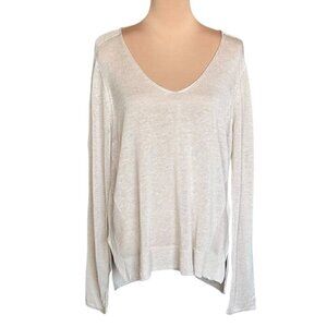 New EIGHTEEN68 Linen V-Neck Sweater Sz.L Beige Relaxed Fit Minimalist Neutral