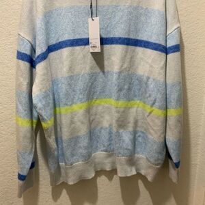 New ELIZABETH & JAMES Women's X-LARGE Drop Shoulder BLUE STRIPE Pullover SWEATER