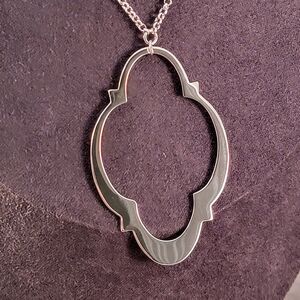 Sleek and elegant in its simplicity, new ELLE sterling silver modern quatrefoil frame openwork statement chain necklace. Fabulous look!