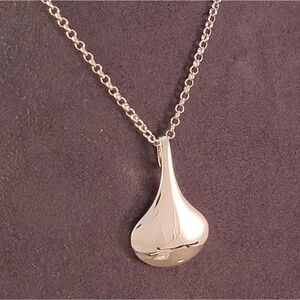 New ELLE Sterling Silver Contemporary Kidney Drop Pendant Necklace