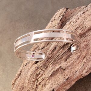 Sleek new ELLE sterling silver openwork architectural cuff bracelet with a Frank Lloyd Wright vibe. Perfect and versatile piece for your accessory collection!