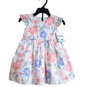New & EUC 9 Month Girl Lot of 2 Dresses Layered Floral Ruffle Sleeves Cotton