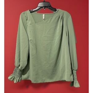New! EVALESS Women's Casual Boho Olive Size Large L Blouse Dress Shirt Top NWT