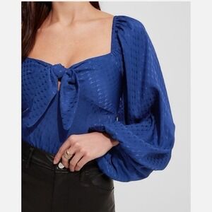 EXPRESS Satin Jacquard Tie Front Thong Bodysuit