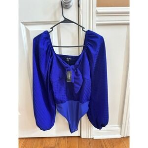 New EXPRESS Satin Jacquard Tie Front purple Thong Bodysuit size XS & Small