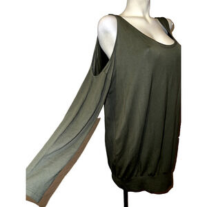 New EXPRESS Top Women's Size M Green Cold Shoulder LS Oversized Banded Tunic
