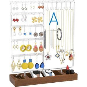 New Earring Holder,Ear Stud Holder with Wooden Tray,Jewelry Organizer Ho…