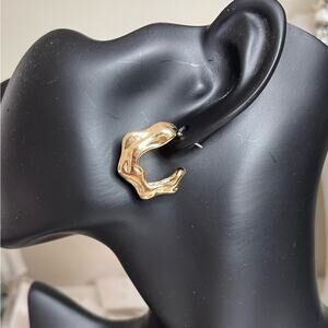 Unique Molten Metal Hoop Earrings, 1” post/pierced, Gold tone. We also have the LISTED IN SILVER TONE!!! Brand new, without tags, please see photos for close up details and measurements and If you have any questions, please don't hesitate to ask. And... THANKS for Stopping by BunnyBlvd!!!